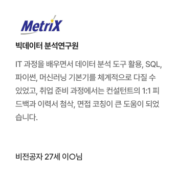 여러 IT학원을 찾아봤지만 아이티뱅크의 후기가 좋았고
